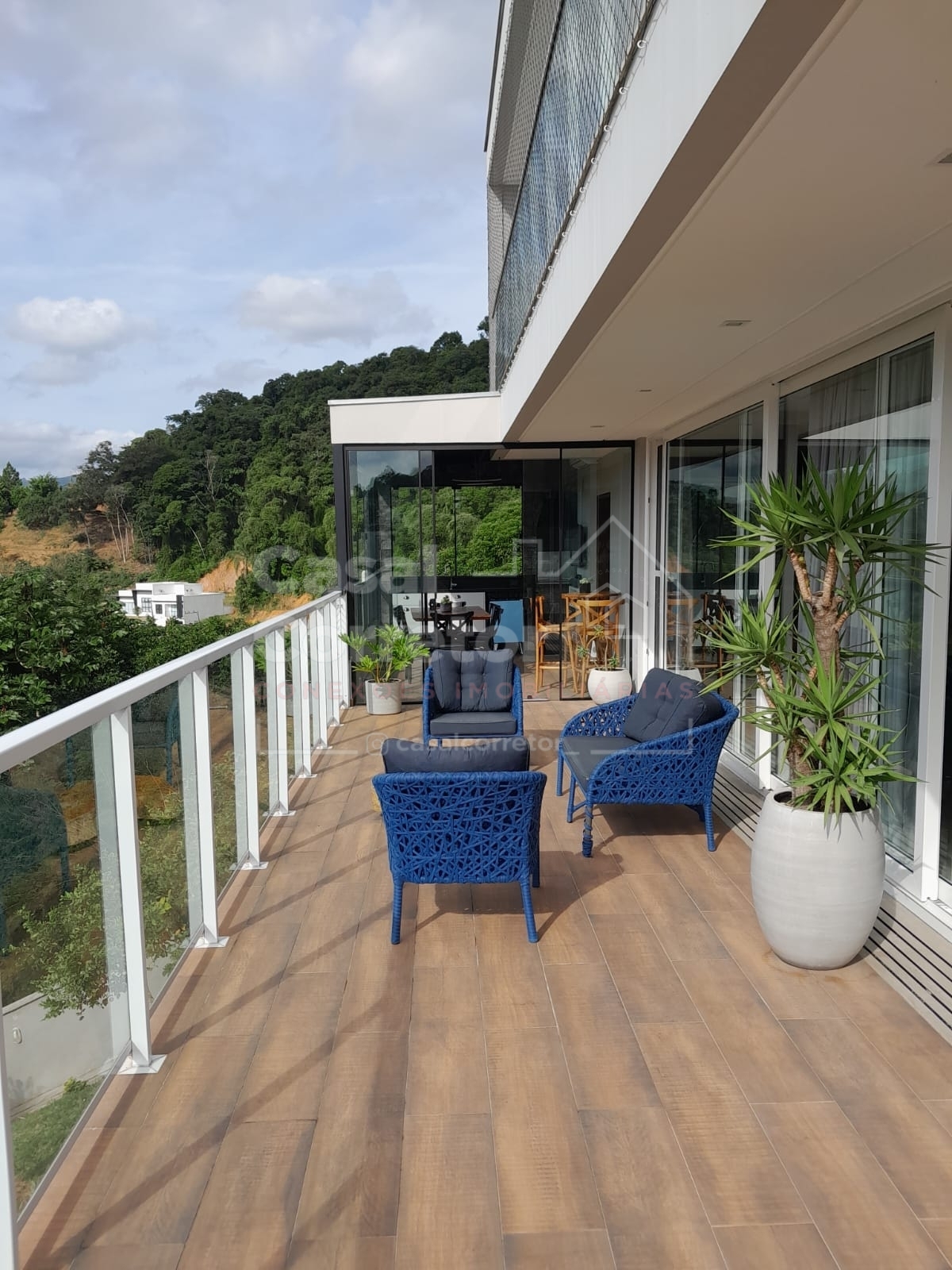 Os acabamentos refinados, como porcelanato e detalhes em gesso, conferem um toque de requinte. Destaque para a cozinha gourmet planejada, perfeita para os amantes da culinária. A sala ampla, com lareira, e a sacada com vista panorâmica completam o charme.